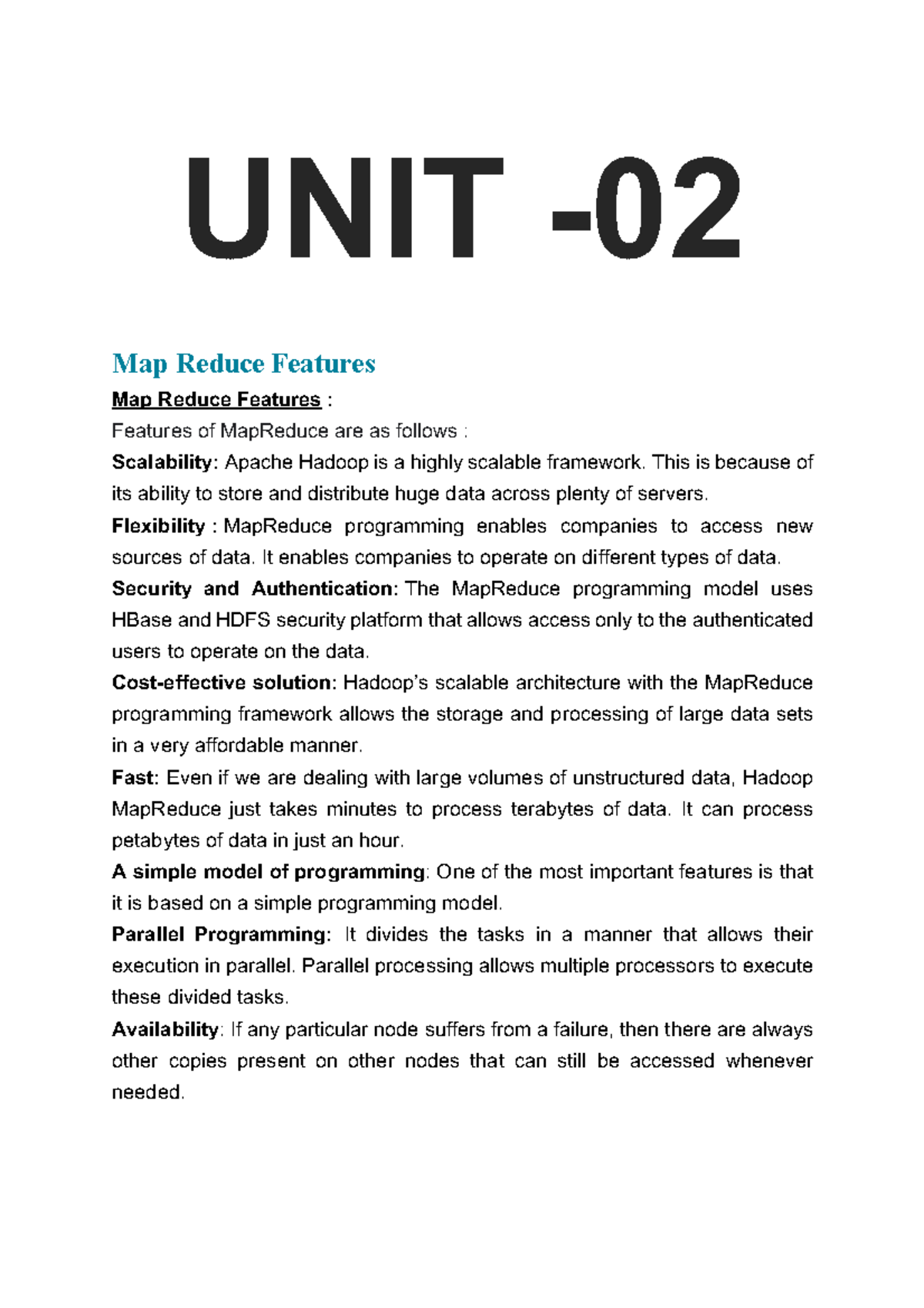 UNIT TWO Notes - Big data - UNIT - 02 Map Reduce Features Map Reduce ...
