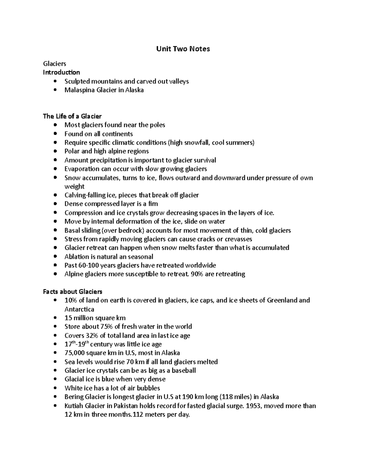 Unit 2 Notes - Unit Two Notes Glaciers Introduction Sculpted mountains ...