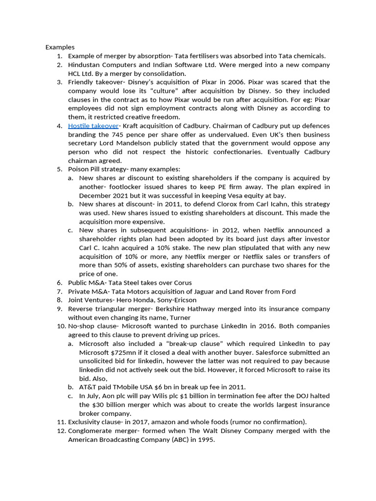 Commercial Examples | PDF | Mergers And Acquisitions | Companies Of The ...