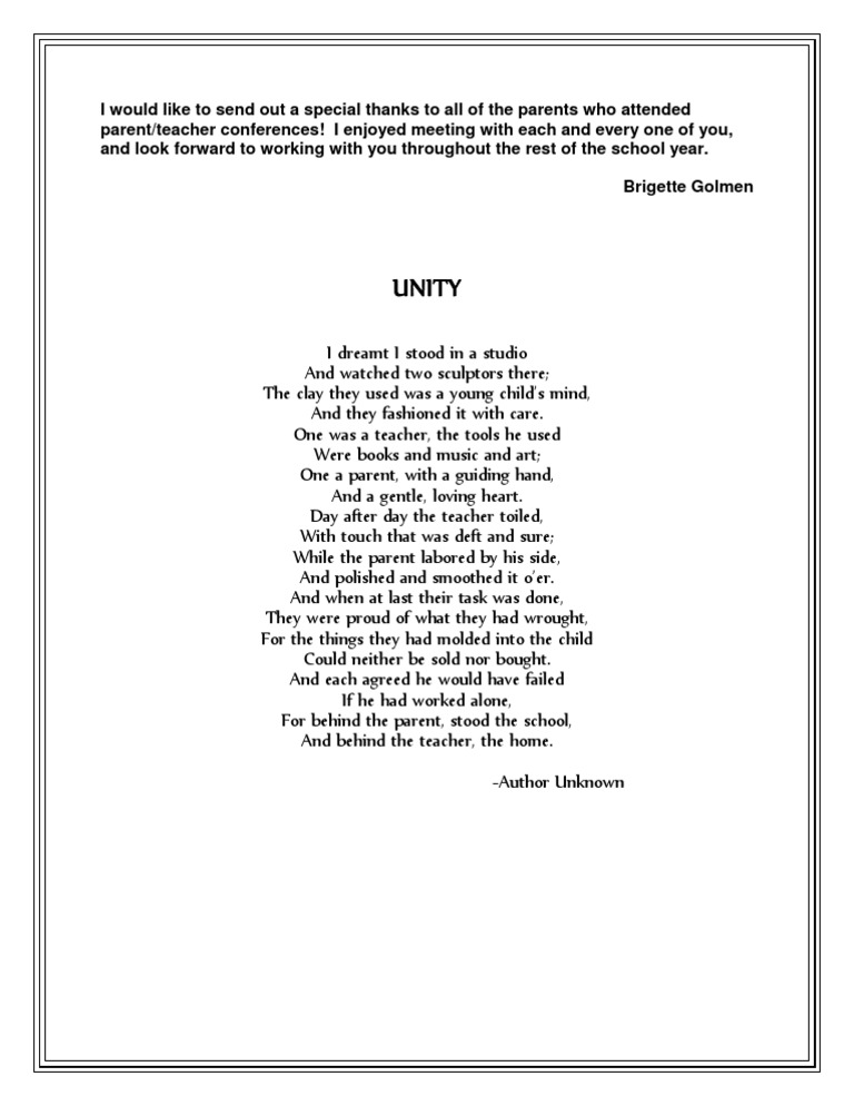 Unity Poem For Parent Teachers or Welcome Night | PDF