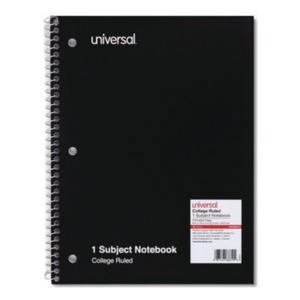Universal UNV66600 11" x 8 1/2" Black 1 Subject College Ruled Wirebound ...