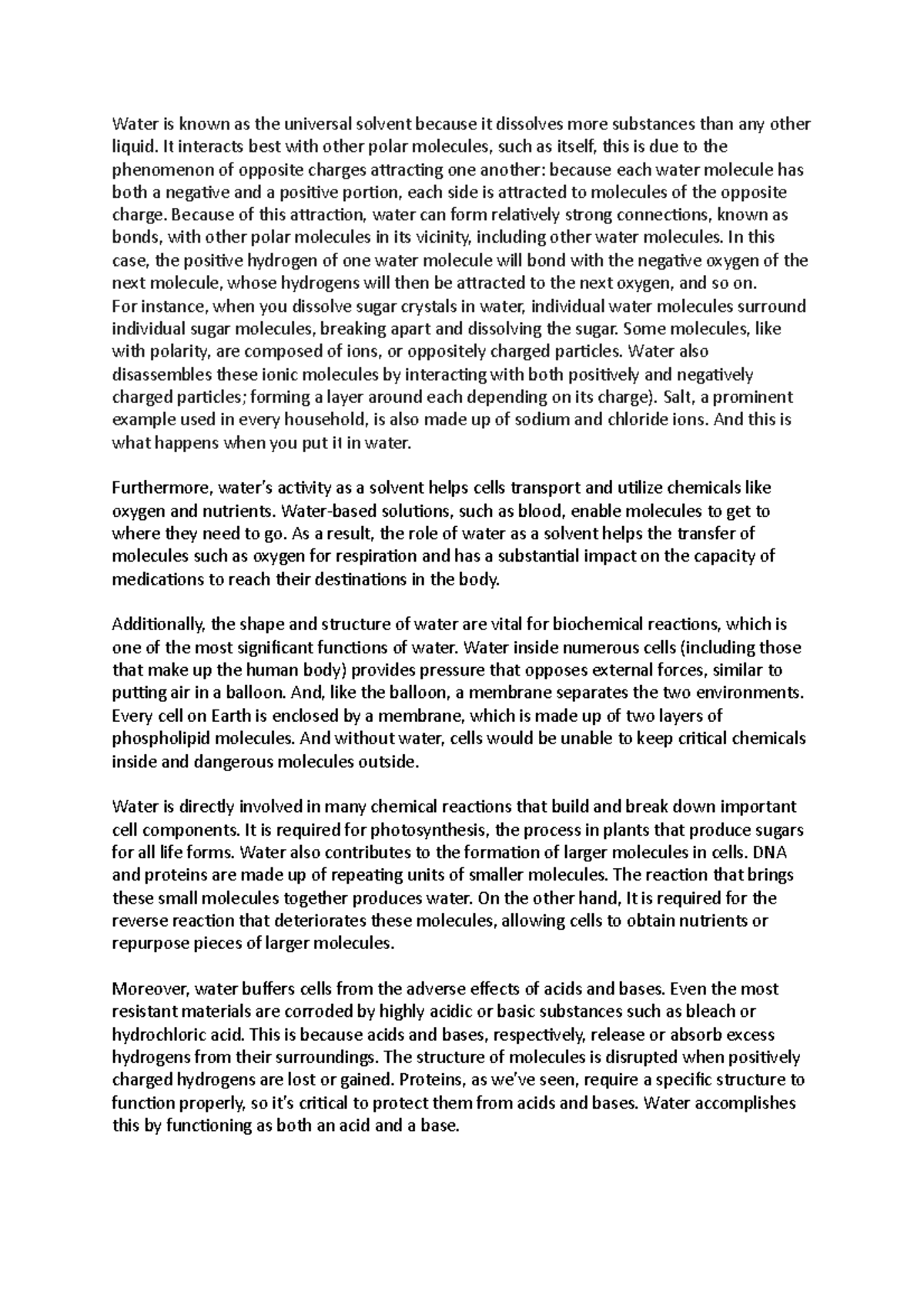 SOLUTION: Water, The universal solvent - Studypool