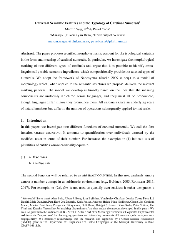 (PDF) Universal semantic features and the typology of cardinal numerals