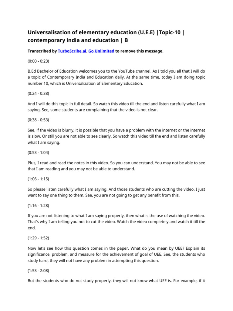 Universalisation of elementary education-B.Ed Assignment - YouTube