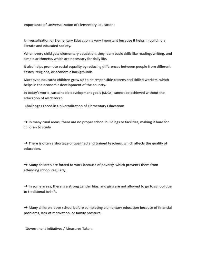 Importance of Universalization of Elementary Education | PDF | Primary ...