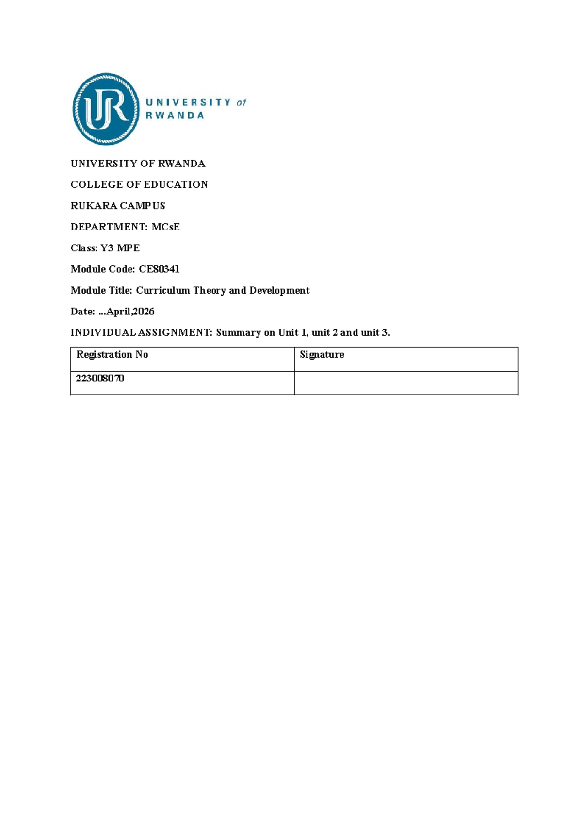 CE80341: Summary of Units 1-3 in Curriculum Theory & Development - Studocu