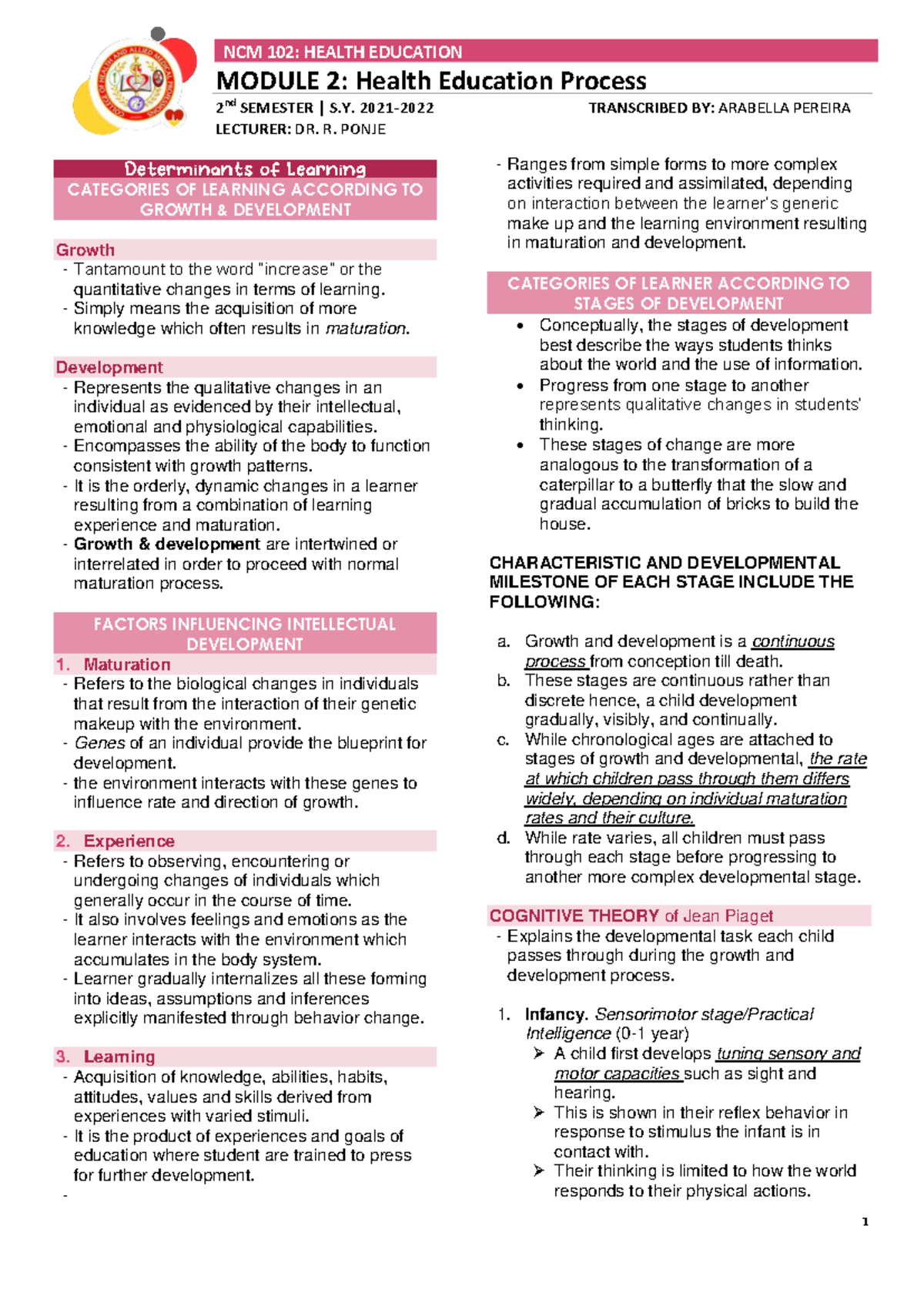 NCM 102: Health Education Module 2 - Understanding Growth & Development ...