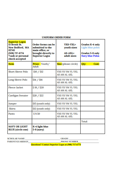 FREE 22+ Uniform Order Forms in PDF | MS Word | XLS