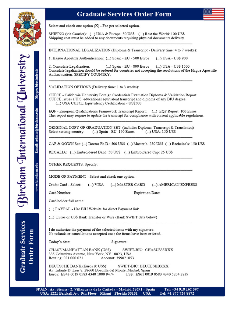 Graduate Services Order | PDF | Diploma | Wire Transfer