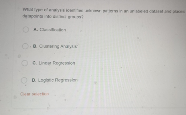 What type of analysis identifies unknown patterns in an unlabeled ...