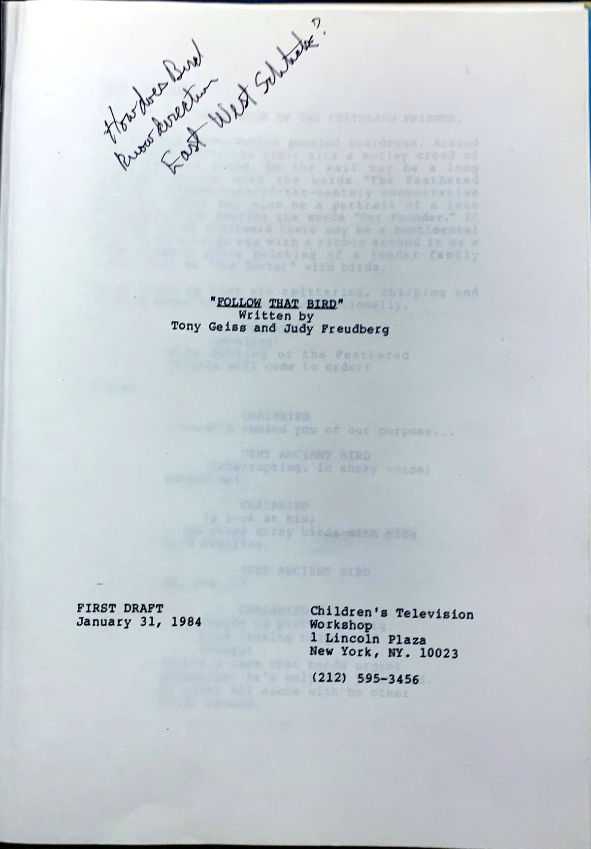Follow That Bird script (January 31, 1984 draft) | Muppet Wiki | Fandom