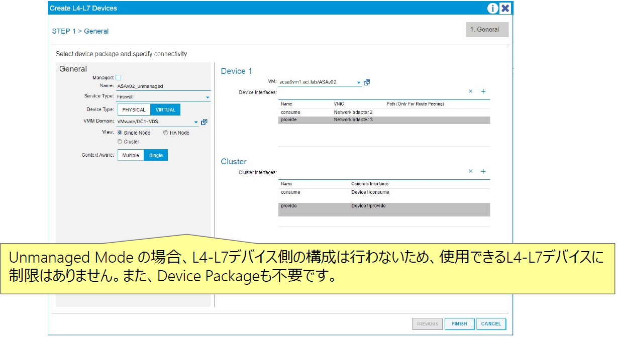 Unmanaged Mode Service Graph (サンプル例はASAvを使用)