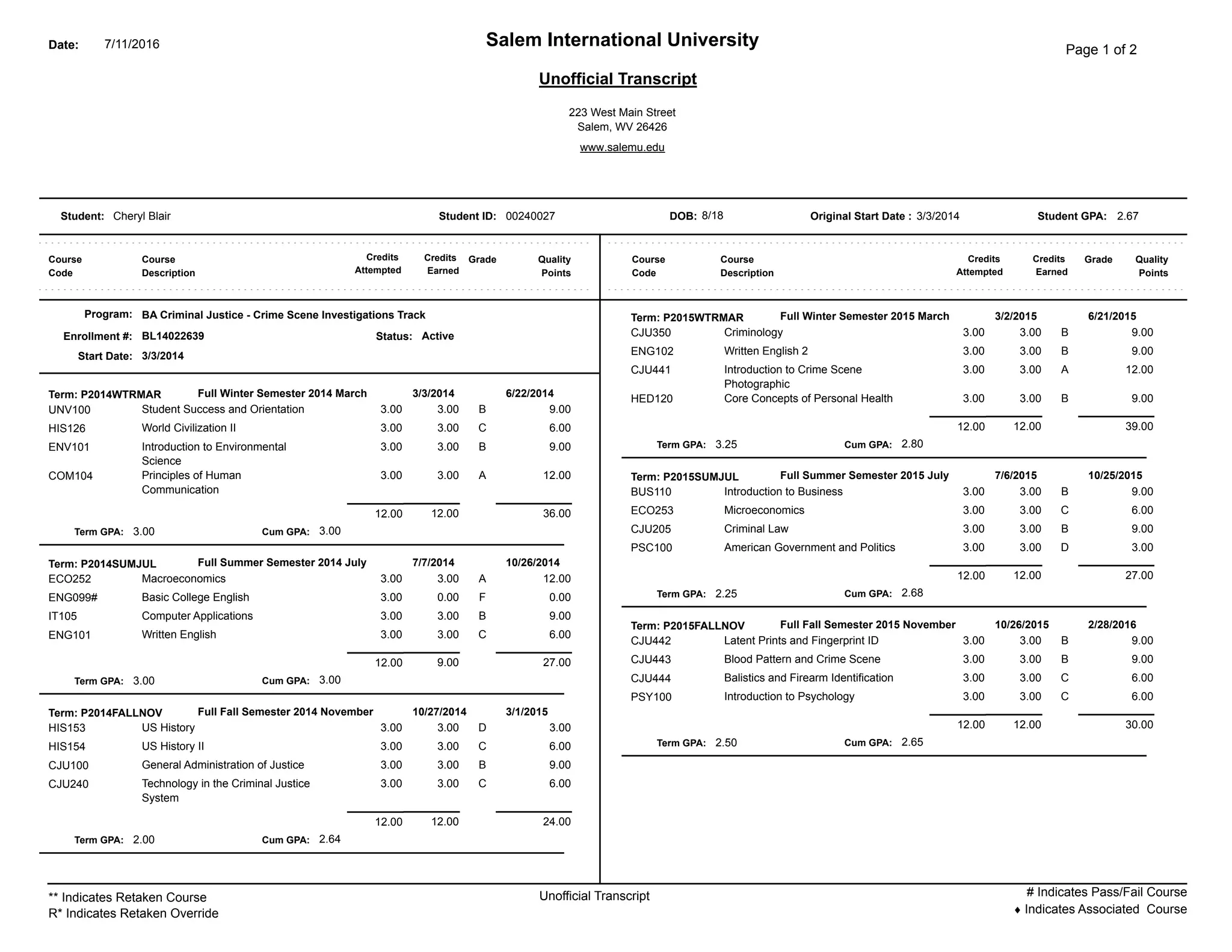 Unofficial Transcript Sp2016 | PDF | Undergraduate Education | College ...