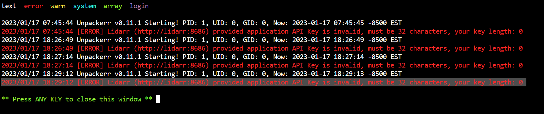 Unpackerr will not start; demands LIDARR configuration. · Issue #257 ...