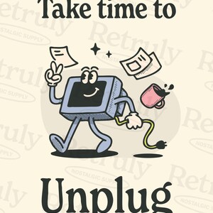 Retro Unplug Poster, Printable Self Care Wall Art for Tech Detox, Funny ...