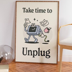 Retro Unplug Poster, Printable Self Care Wall Art for Tech Detox, Funny ...