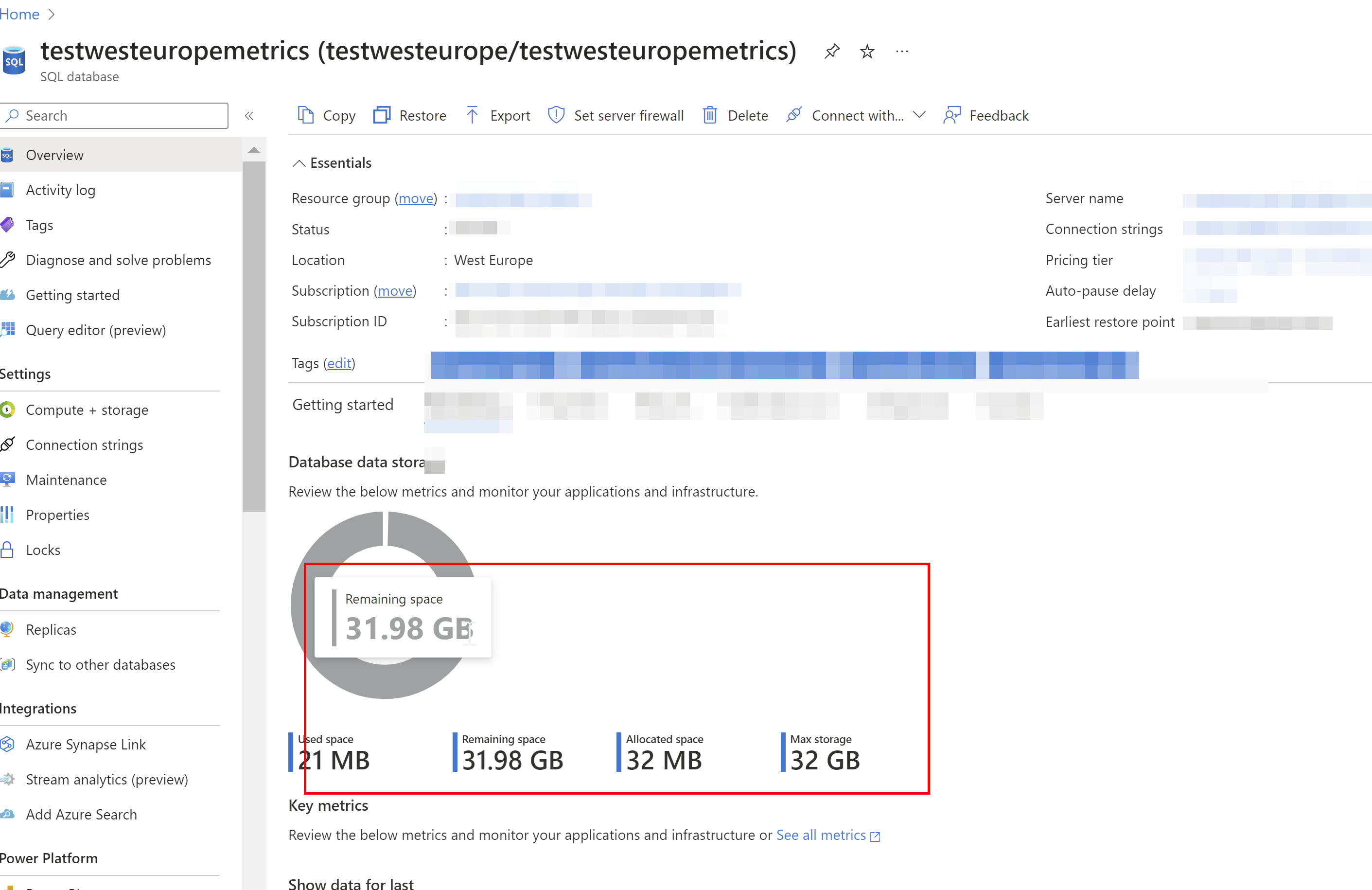 Unreadable database data storage chart in Azure - Microsoft Q&A