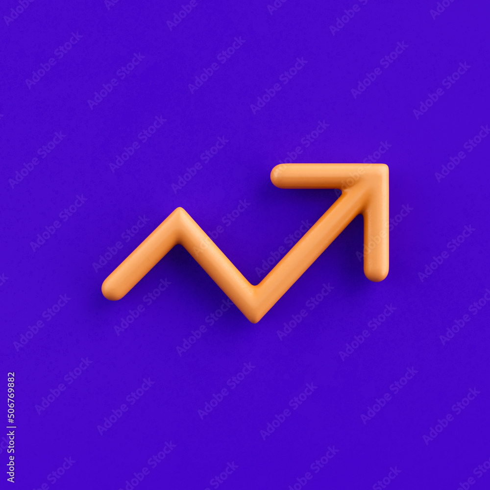 3d icon trend up, outline yellow arrow icon, direction symbol, 3d ...