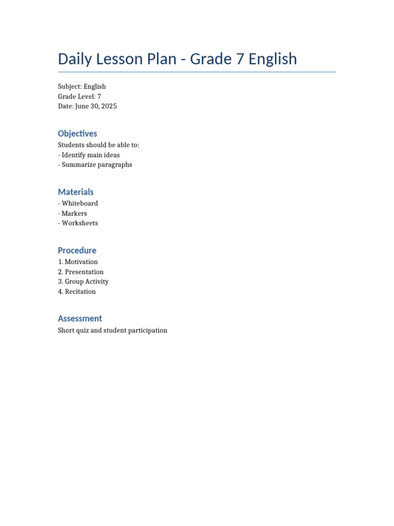 Sample Detailed Lesson Plan | PDF | Résumé | Teachers