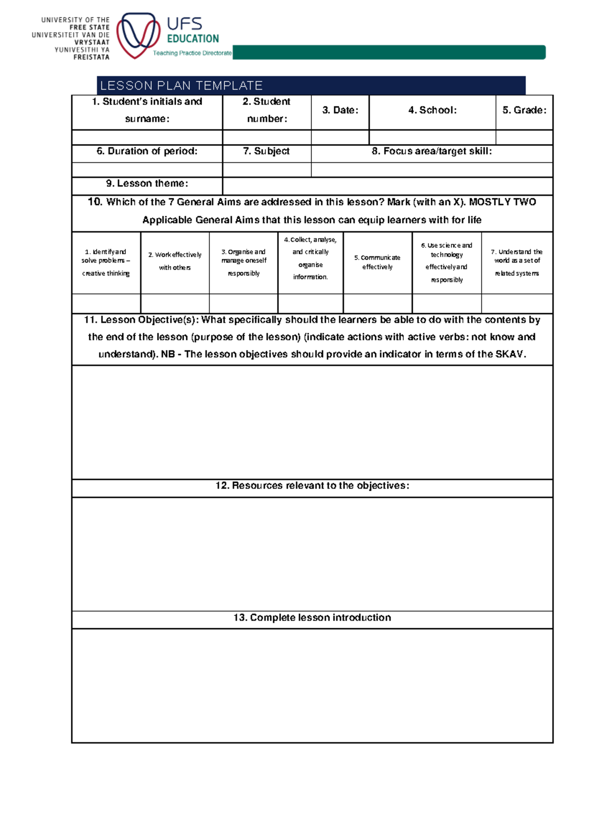 Updated Lesson Plan Template for Effective Teaching - Studocu