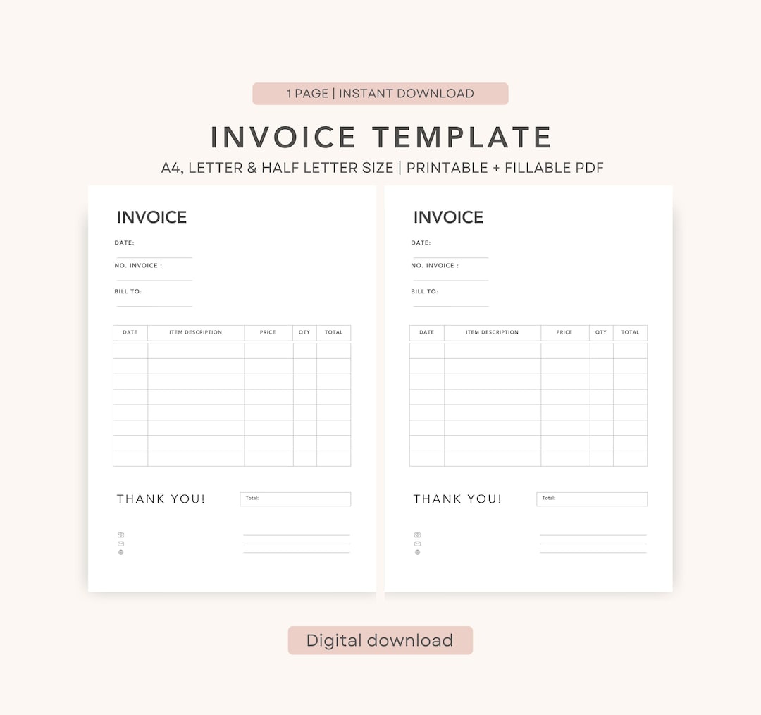 Invoice Template | Instant Download | Editable Invoice | Printable ...