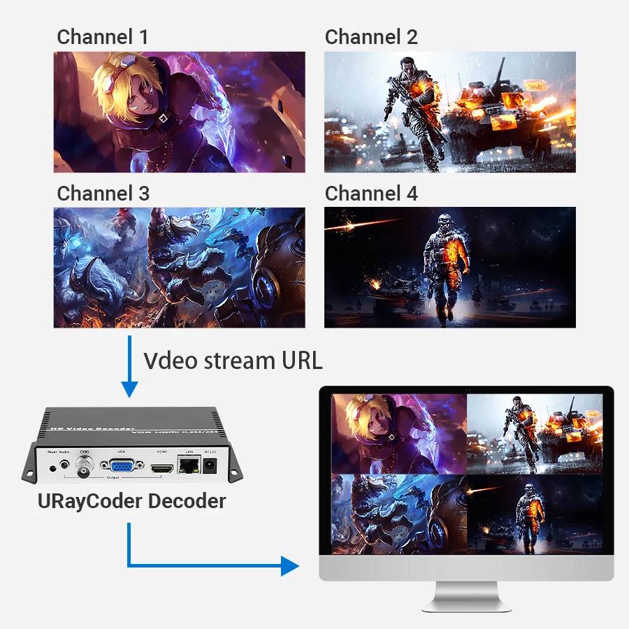 URayCoder H.265 H.264 4K HD IP Video Stream Decoder Supports RTMP HLS ...