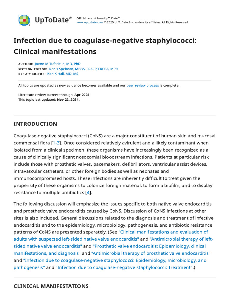 Infection Due To Coagulase-Negative Staphylococci - Clinical ...