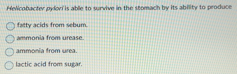 Solved: Helicobacter pylori is able to survive in the stomach by its ...