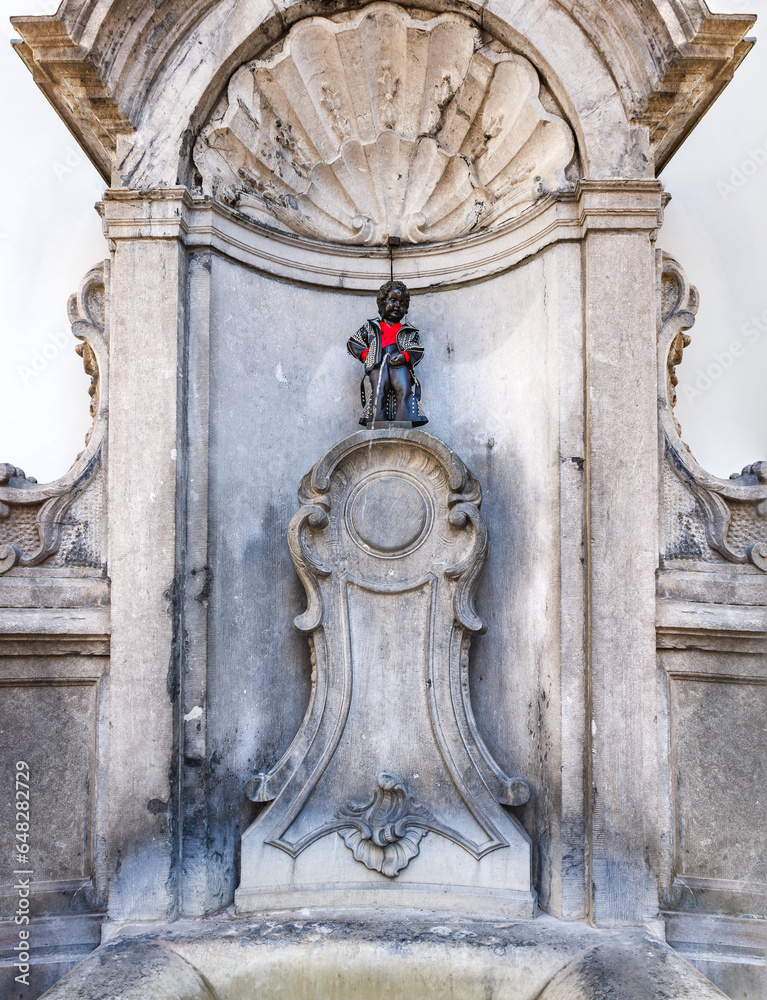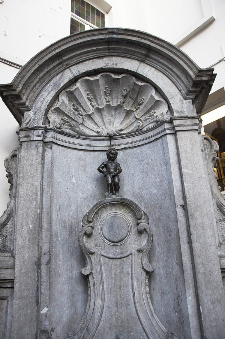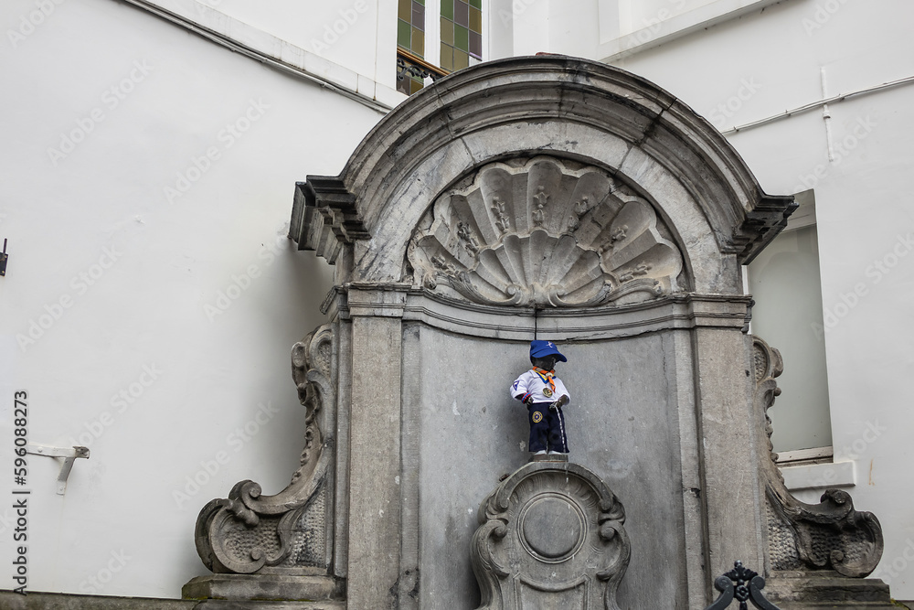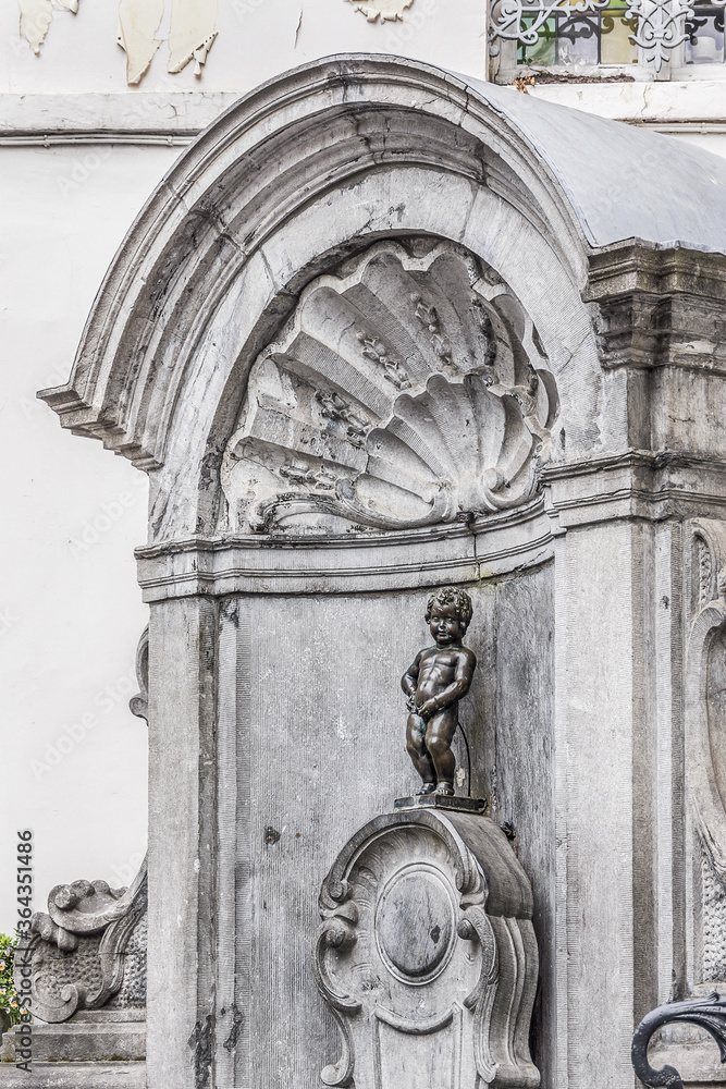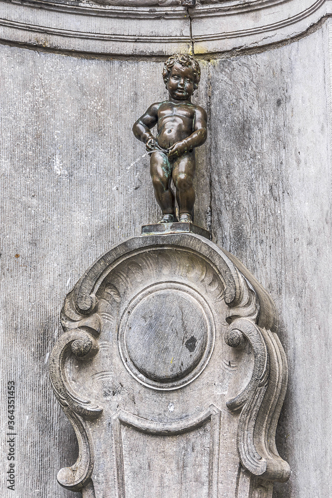 Manneken Pis, a famous statue fountain of a small boy urinating, is ...