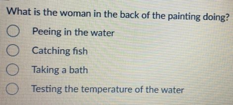 Solved: What is the woman in the back of the painting doing? Peeing in ...