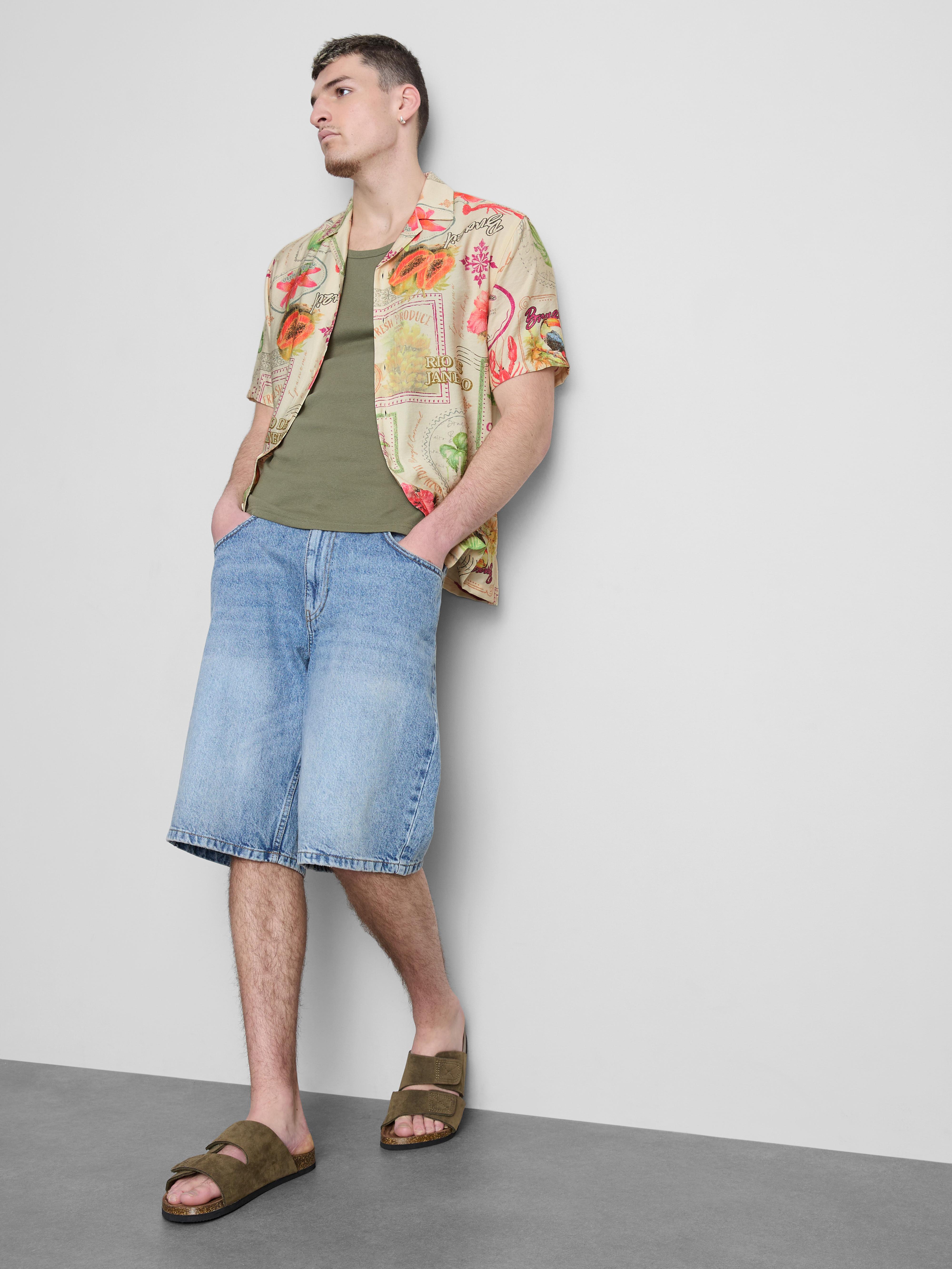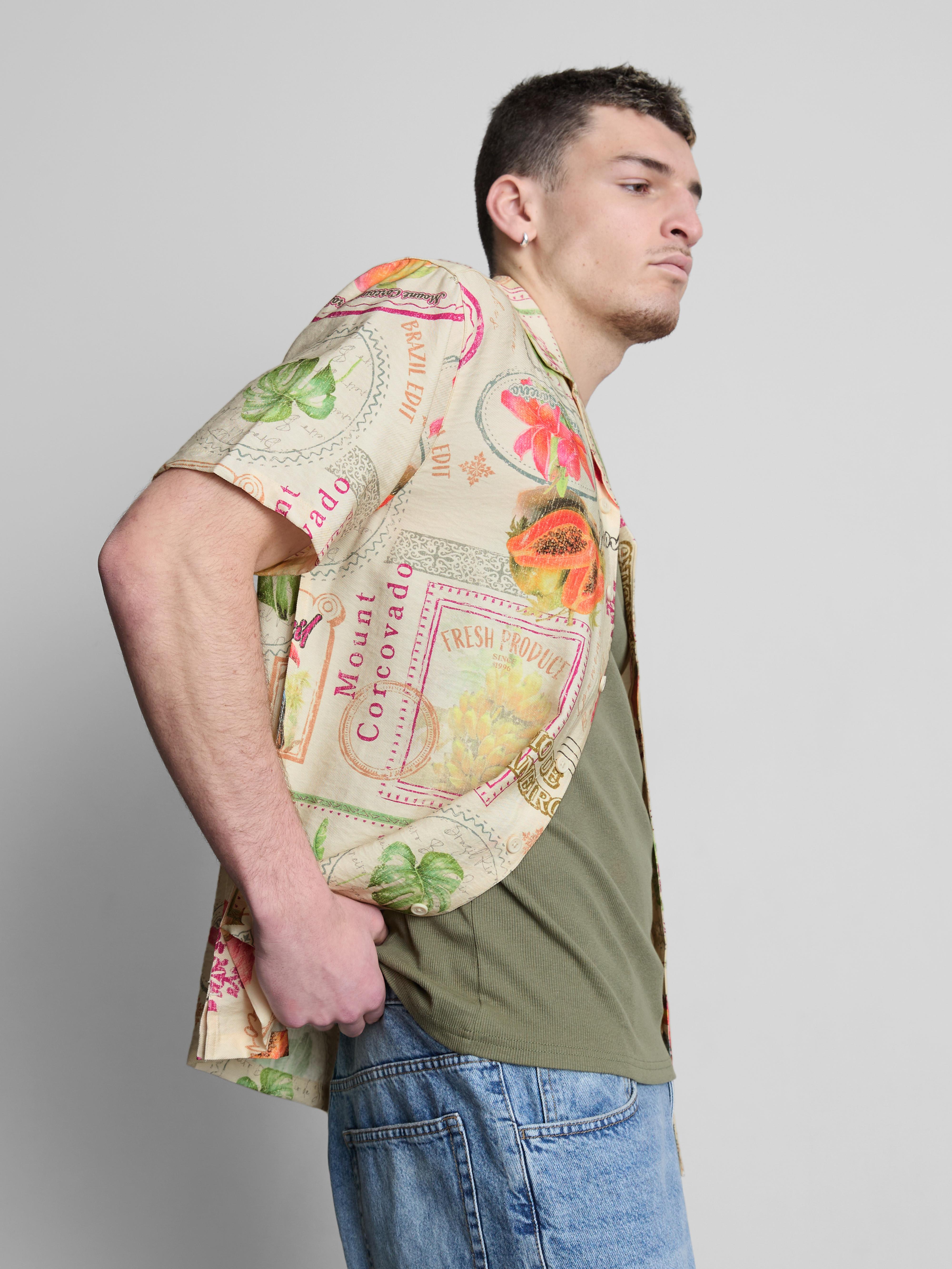 Men's Ivory Tropical Postcard Short-Sleeve Button-Down Shirt | Primark