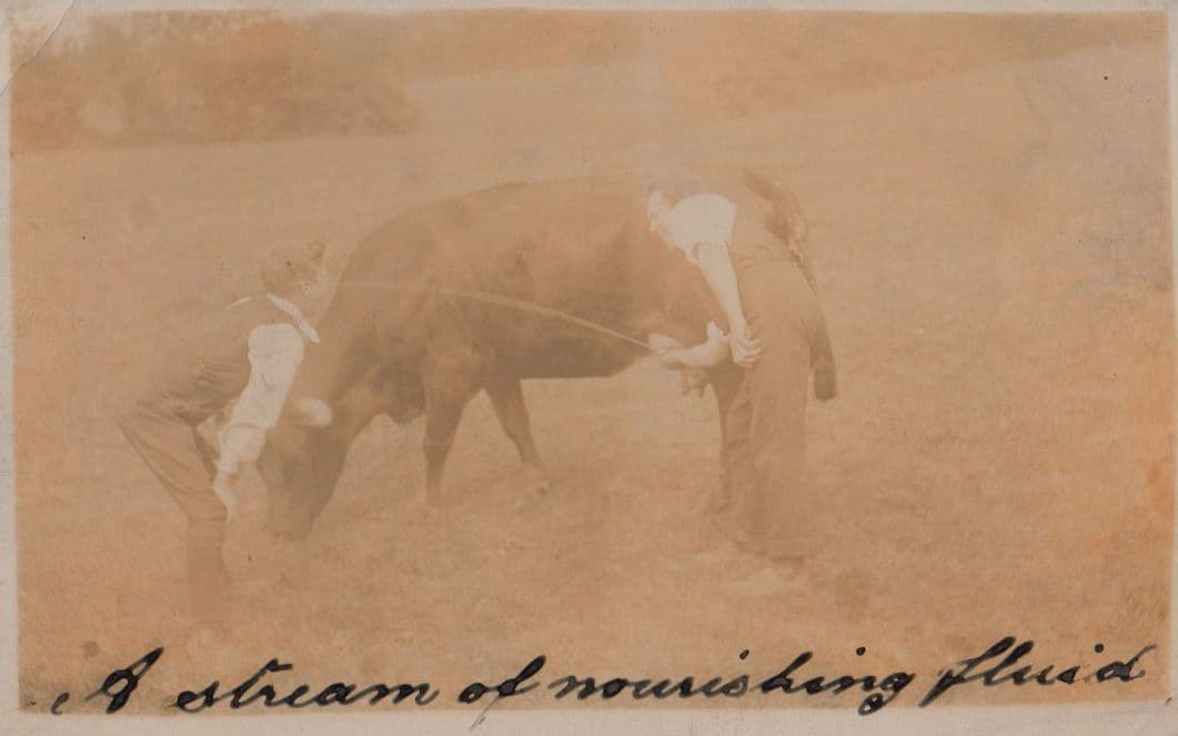 Cow Urinating Over Farmer Face Antique Comic Real Photo Farming Urine ...