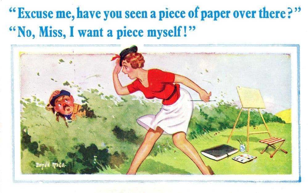 Peeping Tom Urinating In Bushes New Donald McGill Comic Postcard