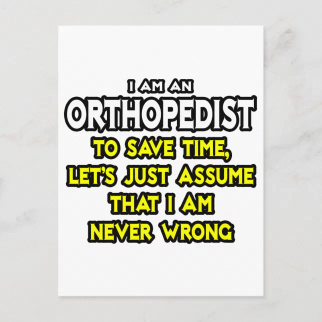 Orthopaedist...Assume I Am Never Wrong Postcard | Zazzle