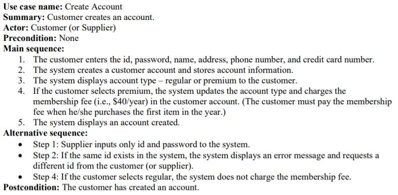 Solved Use case 2: Customer creating an account and | Chegg.com