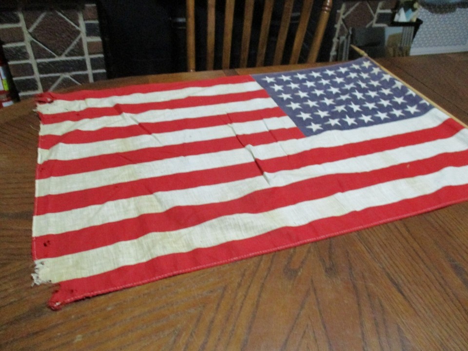 Large Vintage US American Flag, 48 Stars, 22" x 34", 40" Wood Staff | eBay