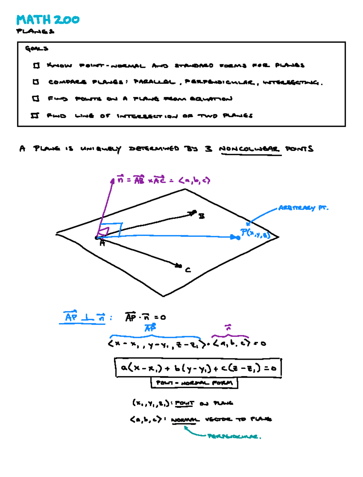 MATH 200 Lecture Notes: Understanding Planes and Their Intersections ...