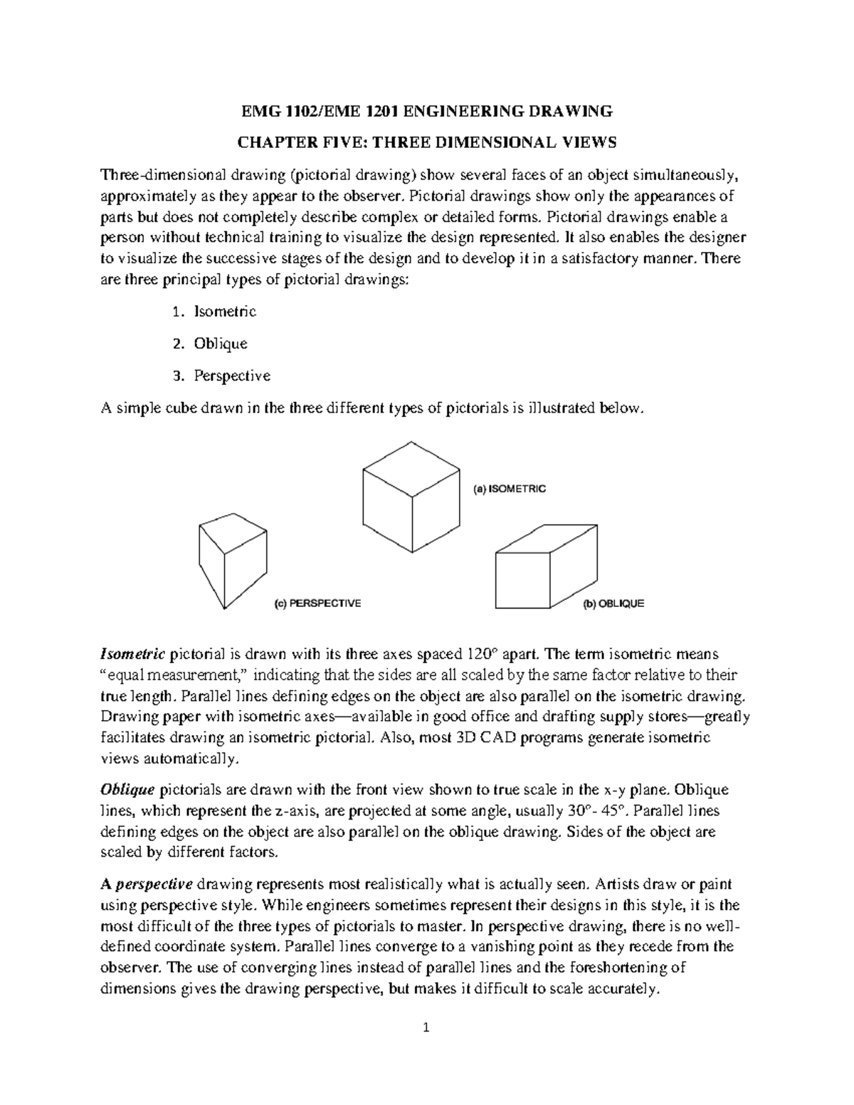 EMG 1201 Engineering Drawing: Chapter 5 - 3D Views & Pictorials - Studocu