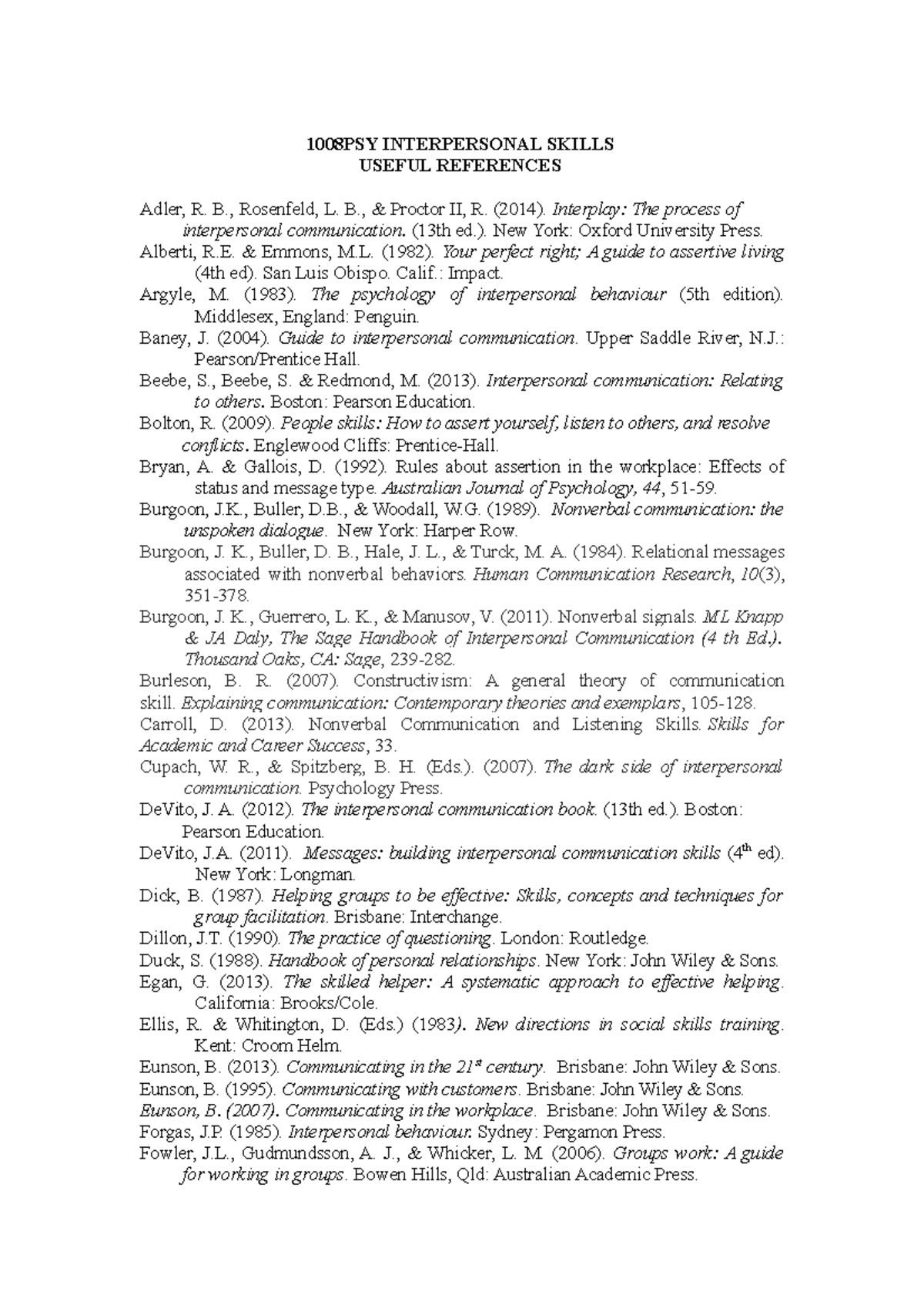 Useful References - assignment - 1008PSY INTERPERSONAL SKILLS USEFUL ...