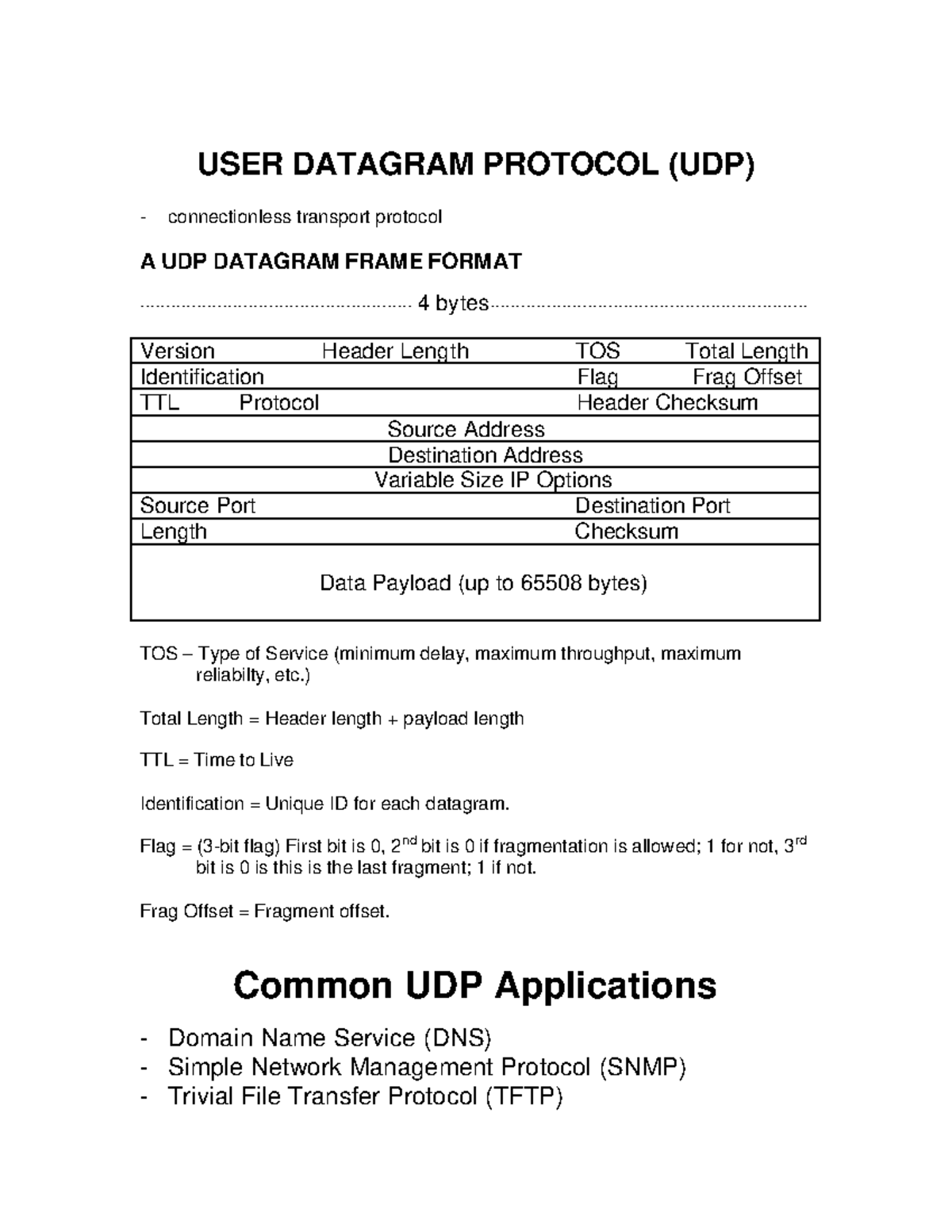 UDP - Lecture Notes on User Datagram Protocol (UDP) - Studocu