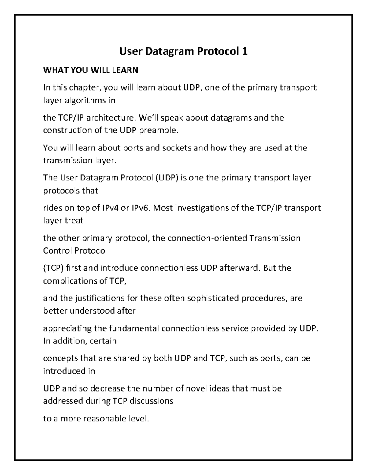 Overview of User Datagram Protocol (UDP) | PDF | Internet Protocols ...