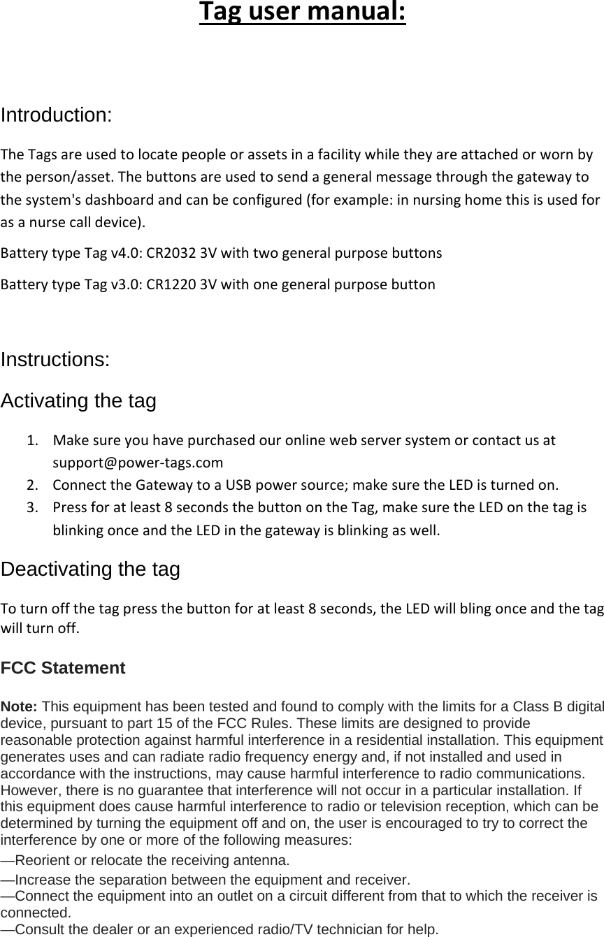 Power Sense Wireless TAGS3V04V0 Personal location tag User Manual User ...
