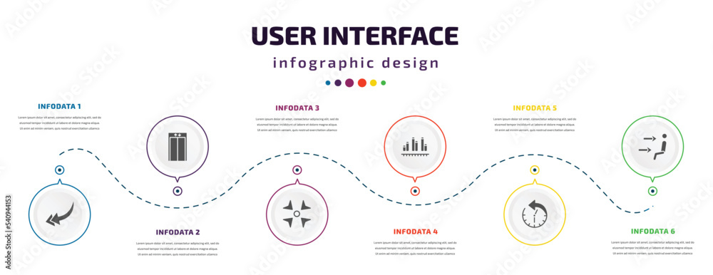 user interface infographic element with icons and 6 step or option ...