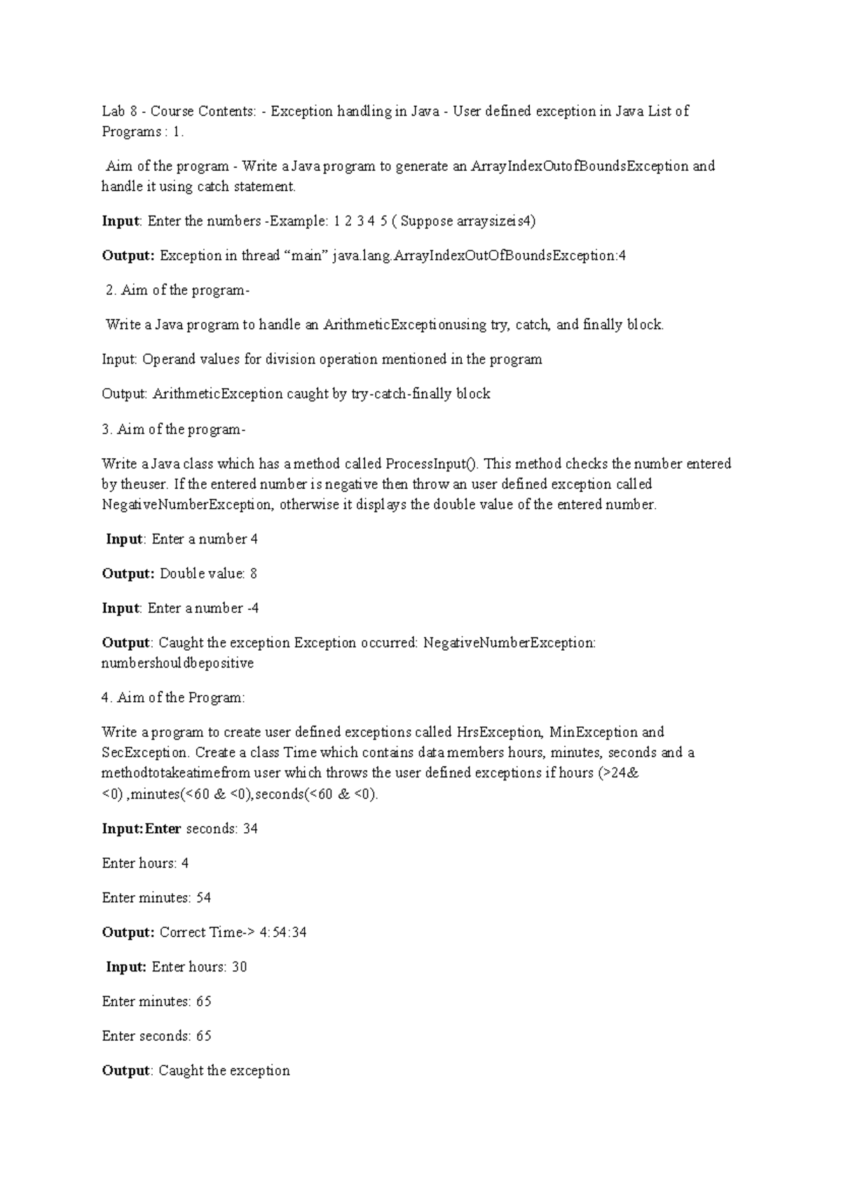 Lab 8: Exception Handling in Java - User Defined Exceptions - Studocu