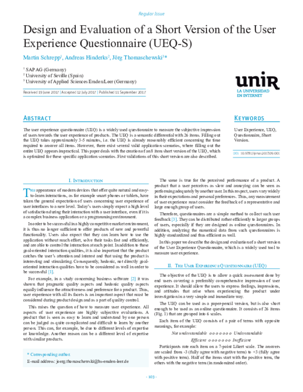(PDF) Design and Evaluation of a Short Version of the User Experience ...