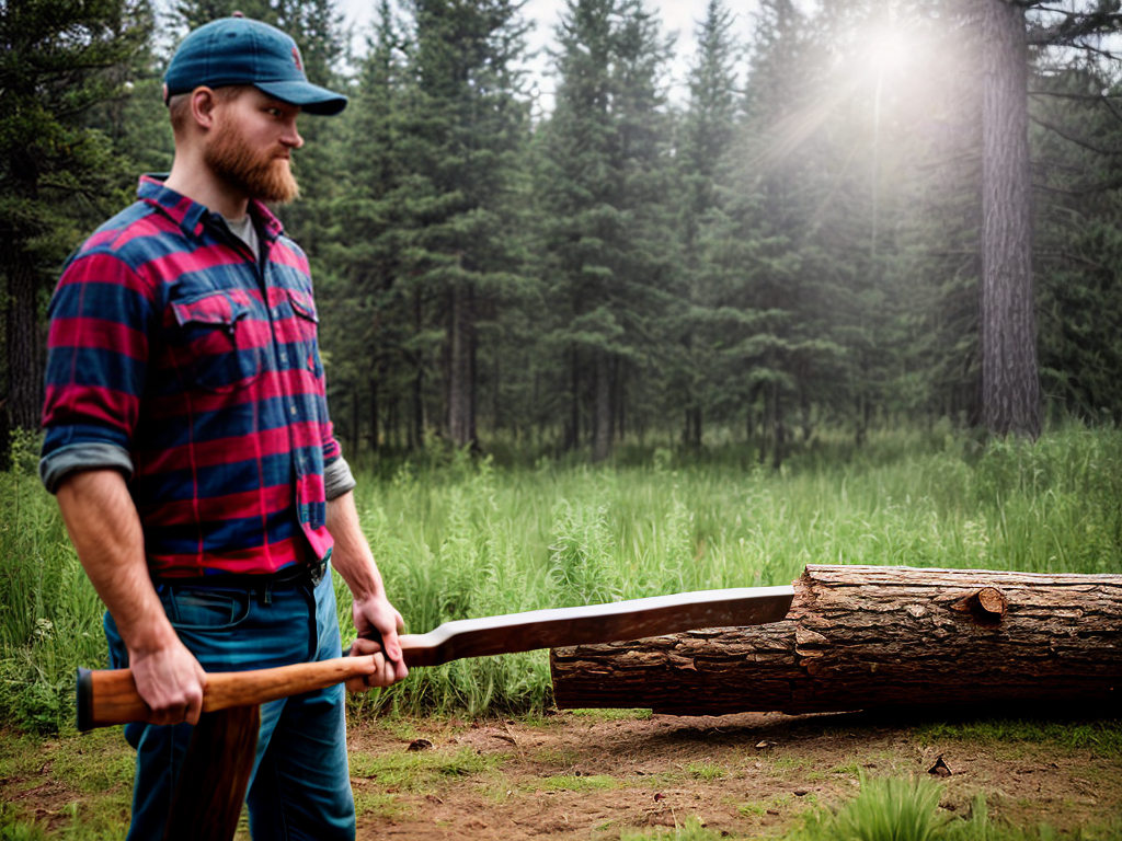 lumberjack using ax looking forward, ultra realistic image photography ...