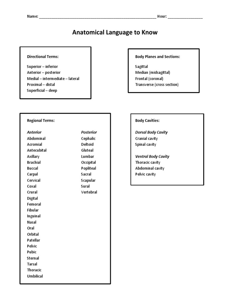 Language Of Anatomy Worksheet In Connect - BiologyWorksheets.net