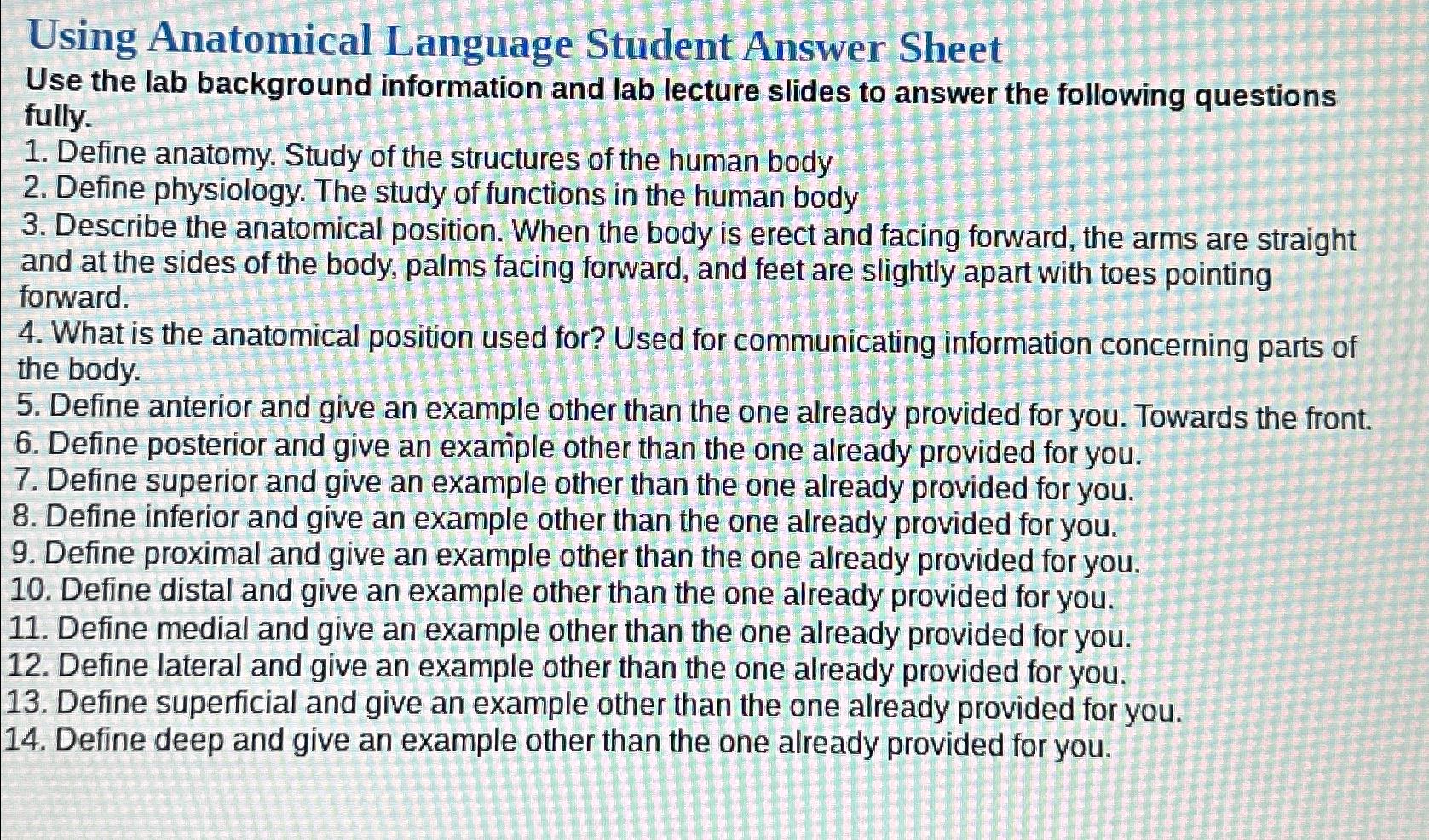 Understanding Anatomical Language: Answer Sheet Guide | Course Hero