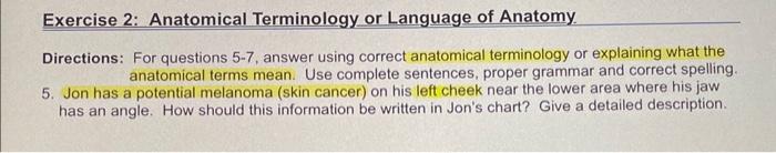 Solved Exercise 2: Anatomical Terminology or Language of | Chegg.com