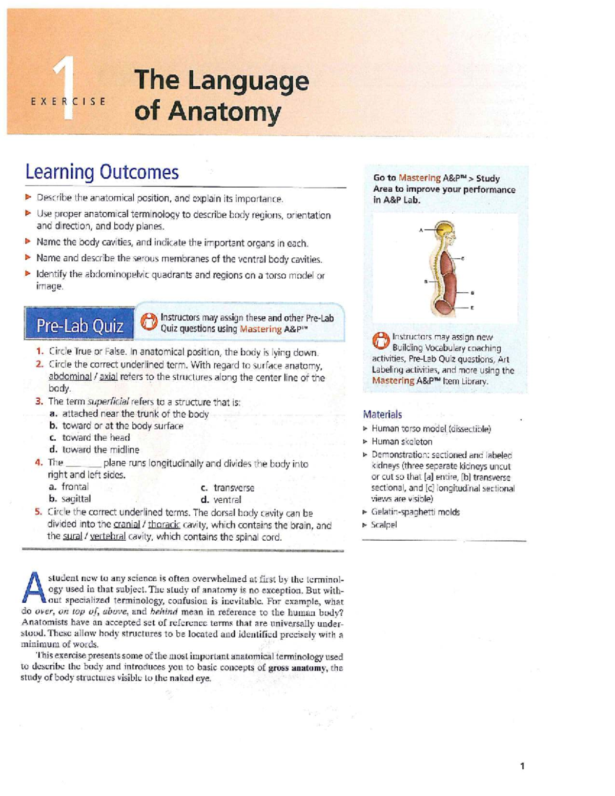 Exercise 1 Review Sheet: The Language of Anatomy (ANAT101) - Studocu